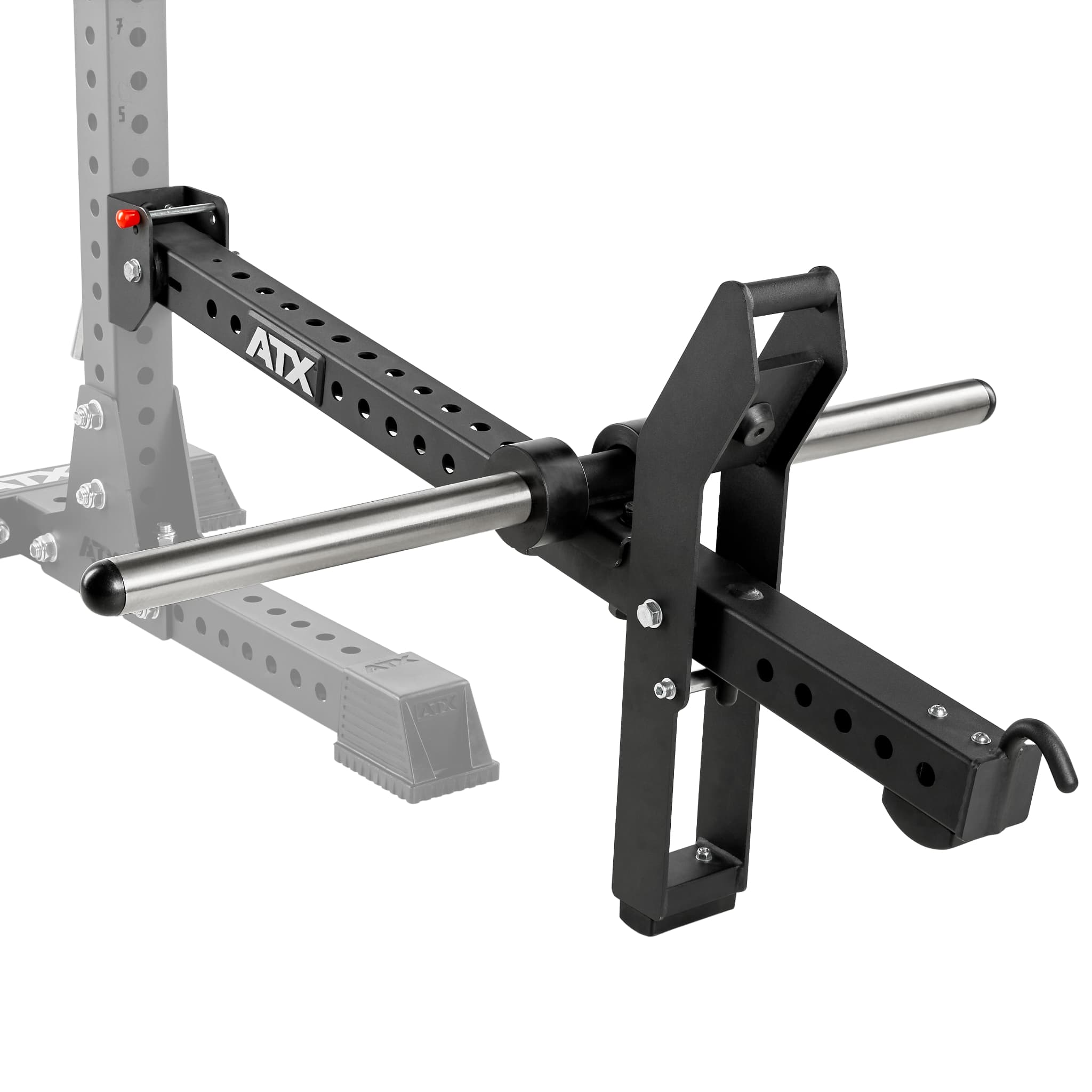 This belt squat attachment is designed specifically for use with ATX Fitness power racks and rigs. Constructed from heavy-duty 70 x 70 x 3 mm steel tubing, it can support up to 400 kg of weight plates.