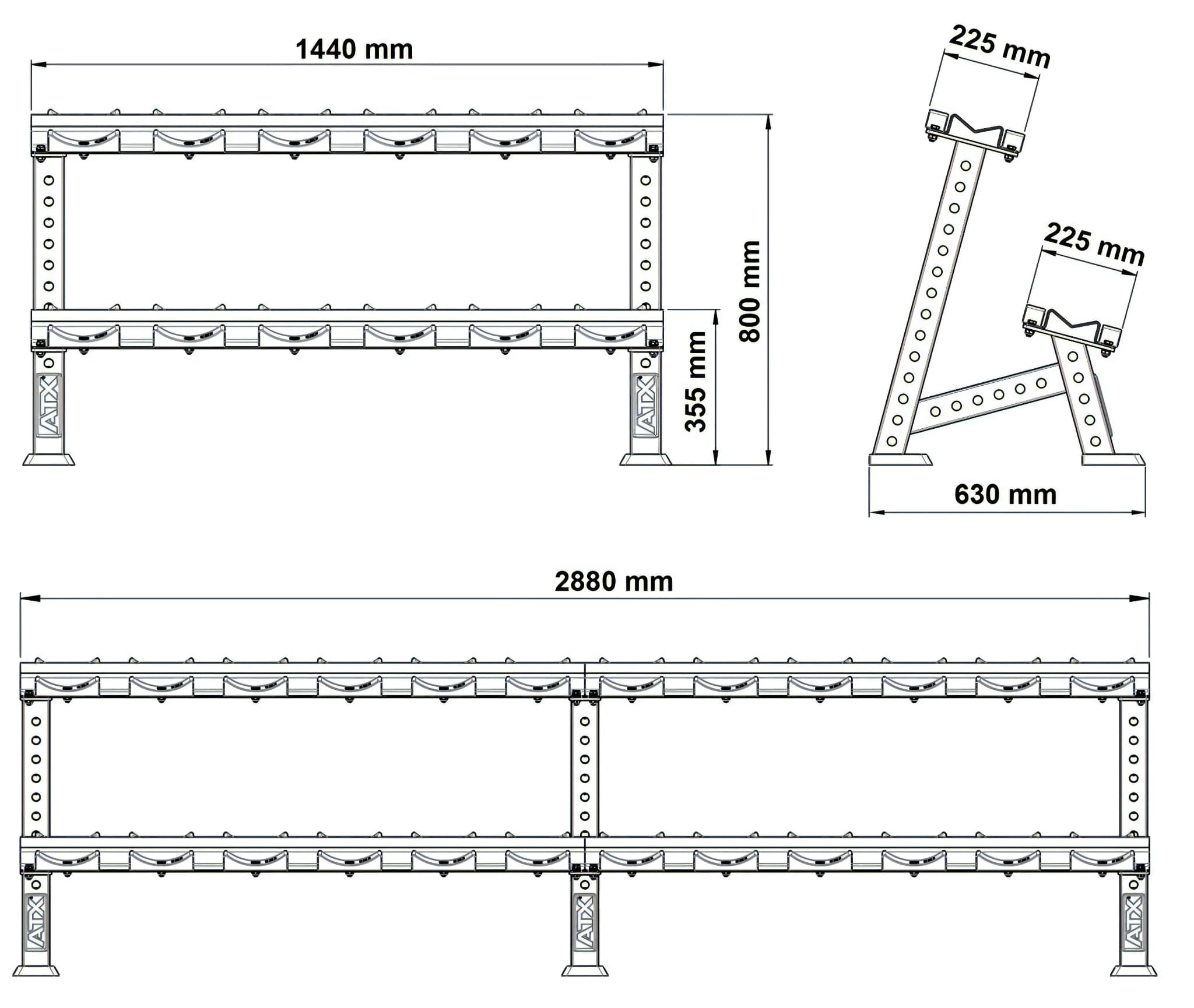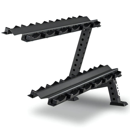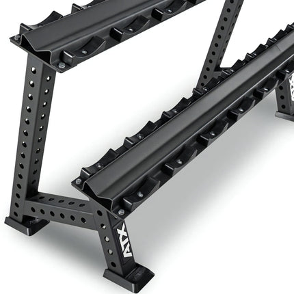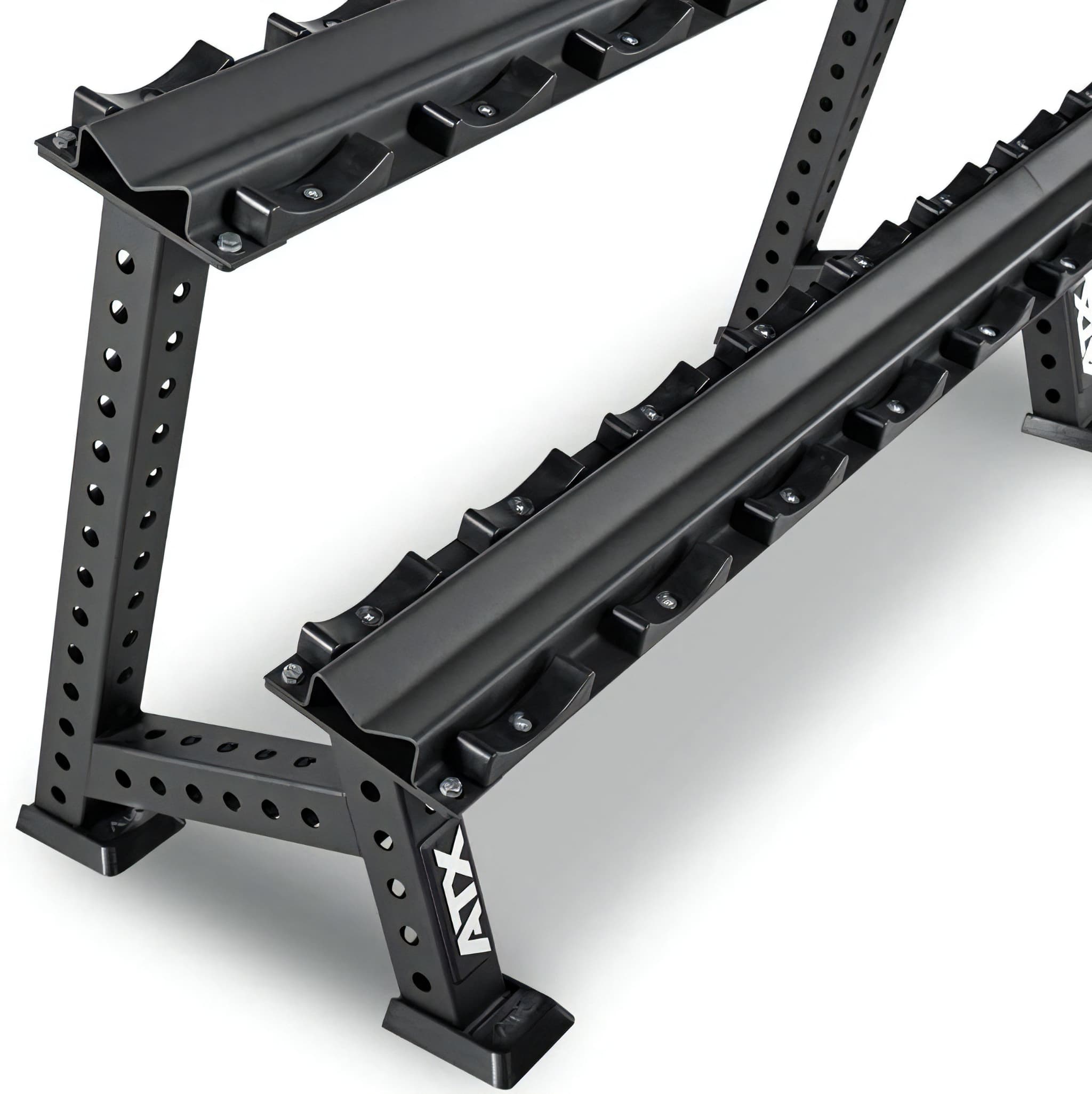The ATX Fitness Expandable Round Dumbbell Rack is a commercial-grade storage solution, specifically designed for round dumbbells. This modular rack system is fully expandable, allowing you to extend the rack as your needs grow. Each base unit holds 6 pairs of dumbbells, and additional sections can be added to accommodate 12, 18, or more pairs.