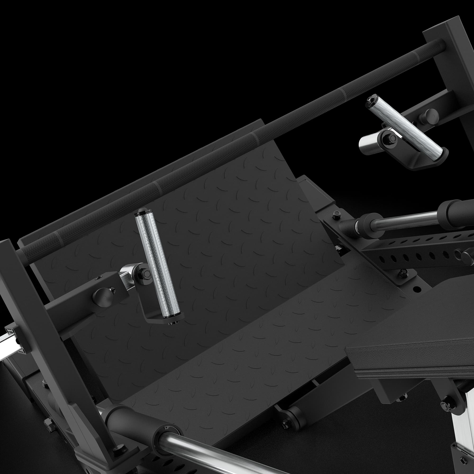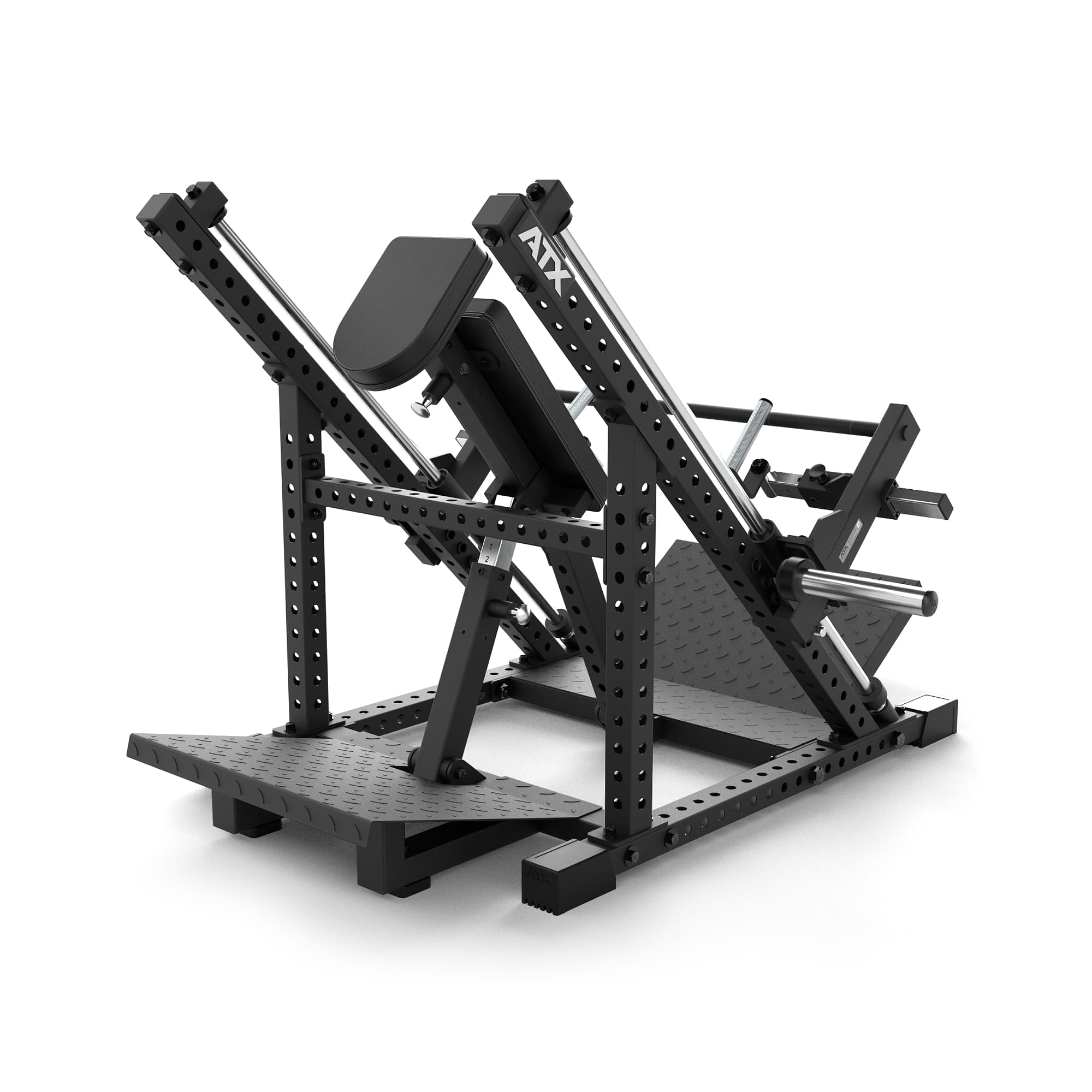 The chest pad is rotatable, allowing for fine adjustment of its angle and position to suit the user's physique. By fixing it with a magnetic pin, the start and end positions of the weight sled (the sliding part for loading weights) can also be adjusted individually. Anti-slip steel footplates are provided at the front and back, ensuring a stable training posture.