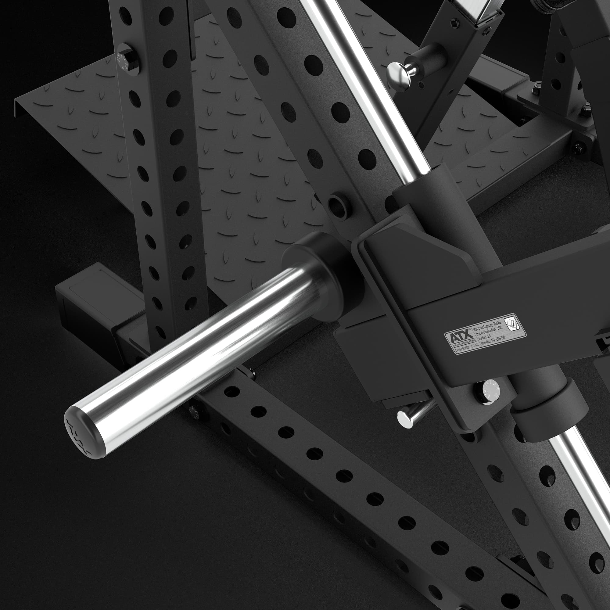 The frame is made of sturdy square steel tubing, and the 4-row linear ball bearing guides provide exceptionally smooth sliding movement. The grip width and angle can be freely adjusted, and the 360° rotating pull grips are knurled for ample grip. Additionally, a straight grip bar is included.