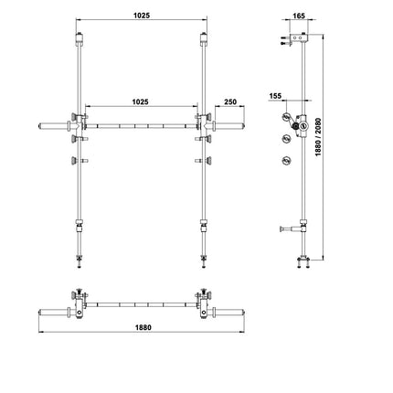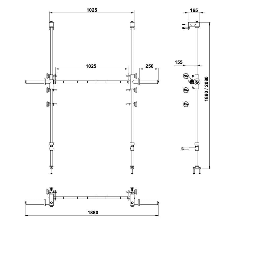 For 195cm rack: 188cm For 215cm rack: 208cm |