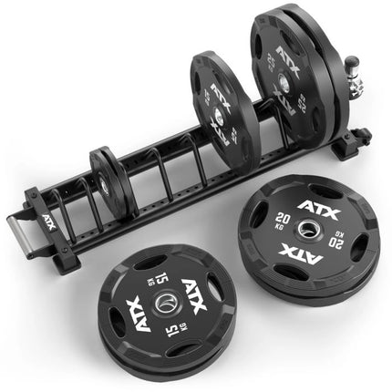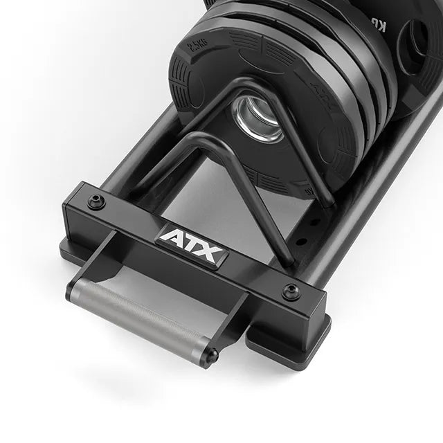 The ATX Fitness Horizontal Weight Plate Rack offers a versatile and spacious storage solution for your weight plates, featuring built-in wheels and a swivel handle for easy transport and repositioning around your gym.