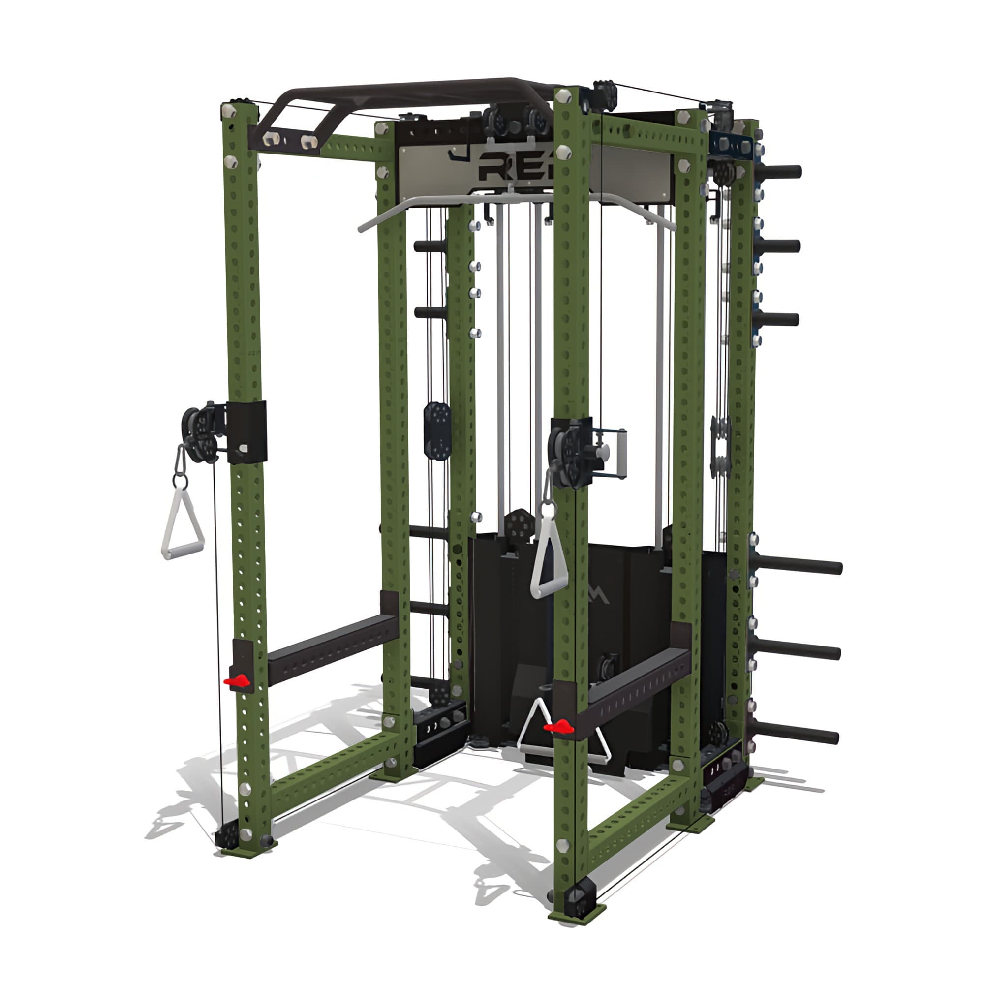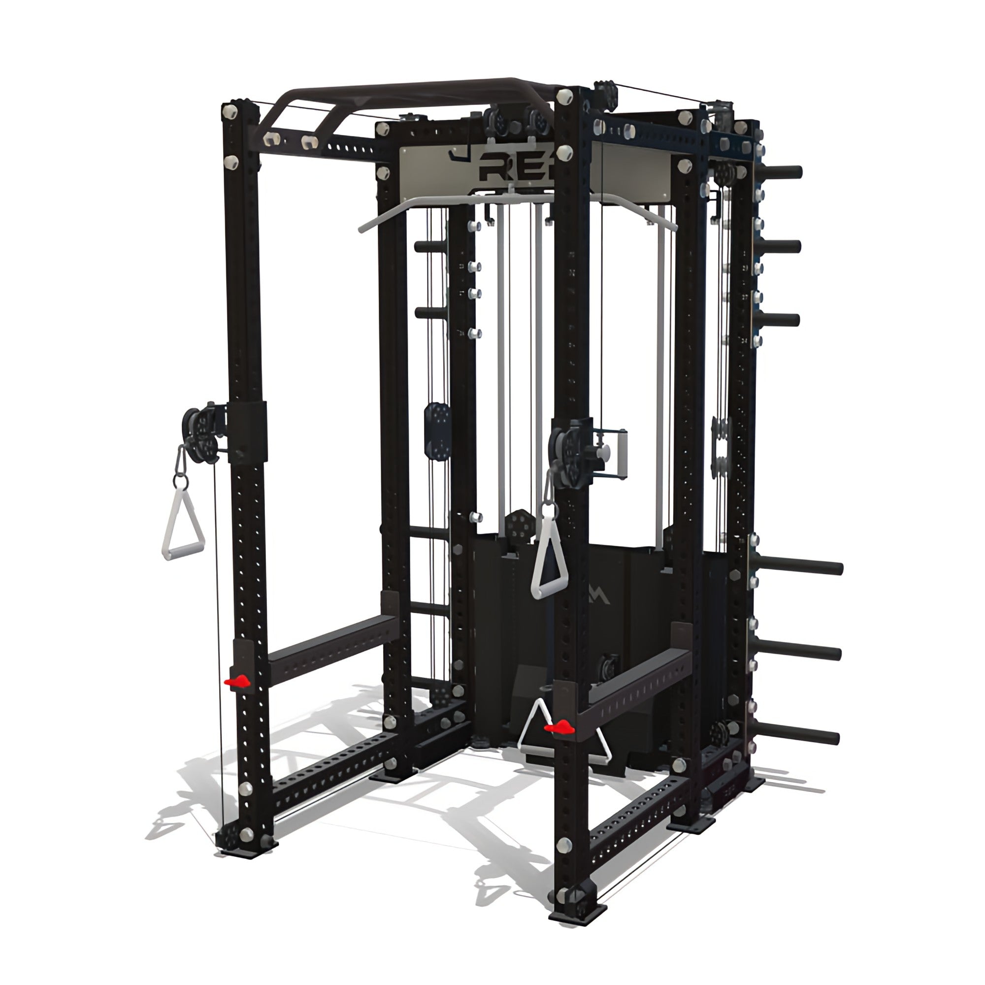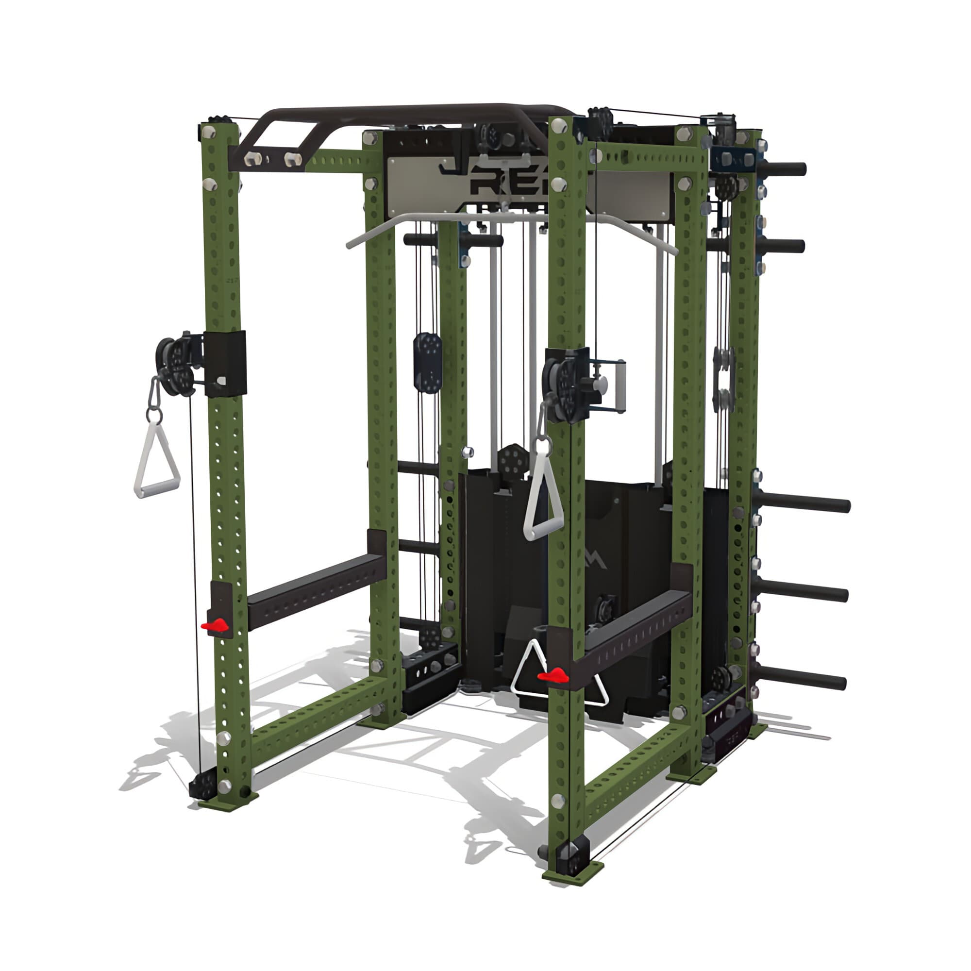 Ares™ 2.0はREP FitnessのPR-5000パワーラックに取り付け可能なファンクショナルトレーナーおよびラットプルダウン/ローローアタッチメントです。
