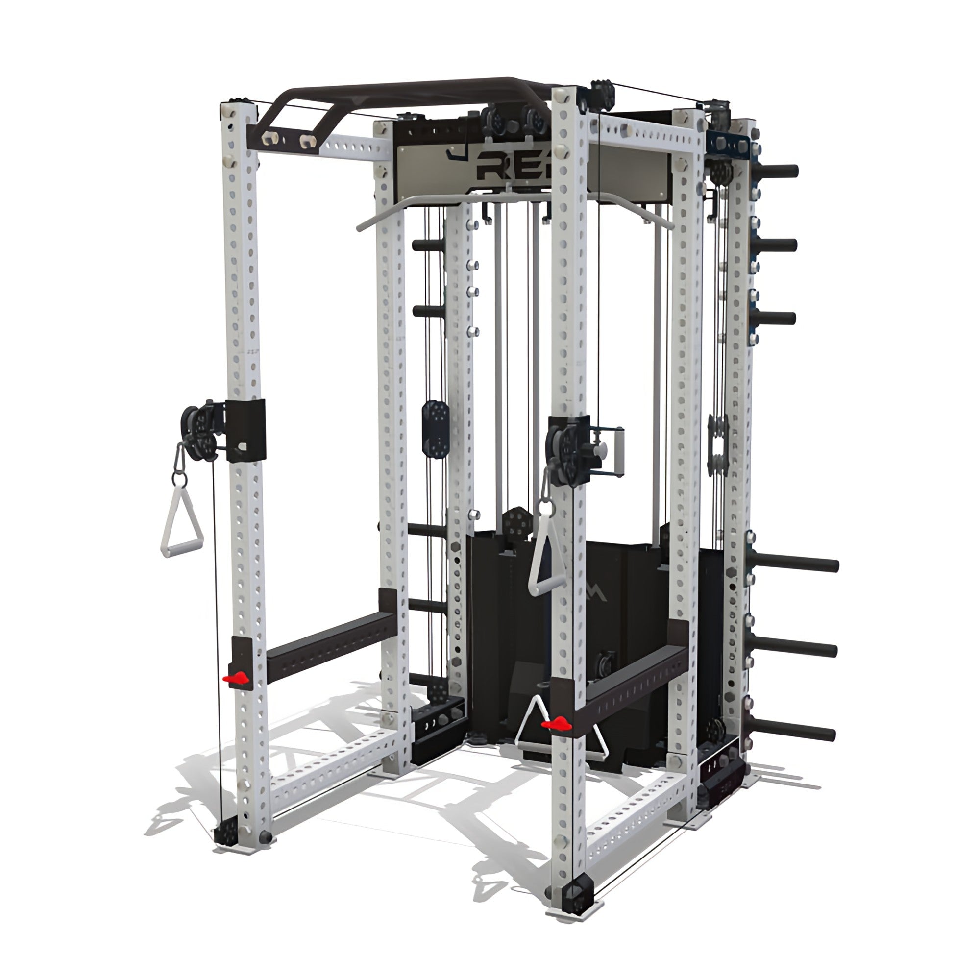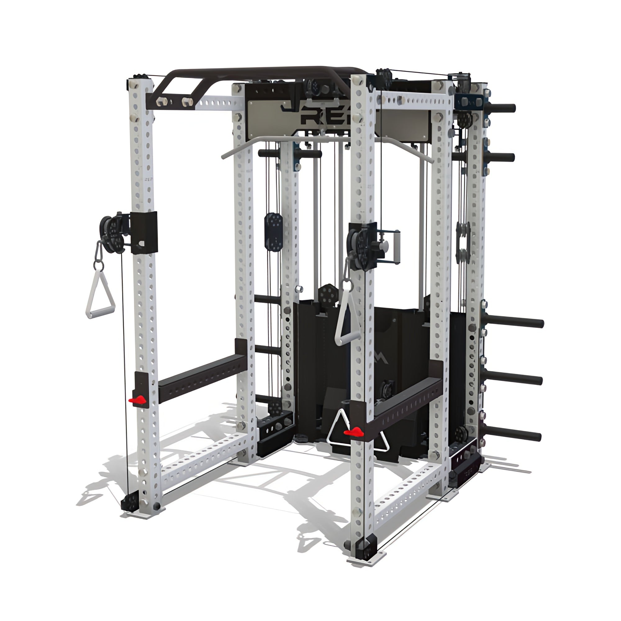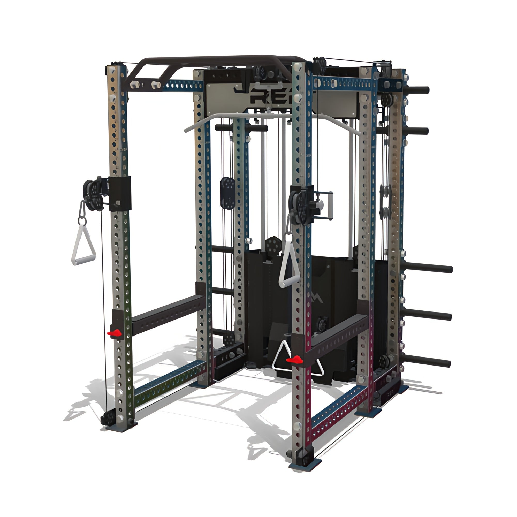 Ares™ 2.0はREP FitnessのPR-5000パワーラックに取り付け可能なファンクショナルトレーナーおよびラットプルダウン/ローローアタッチメントです。