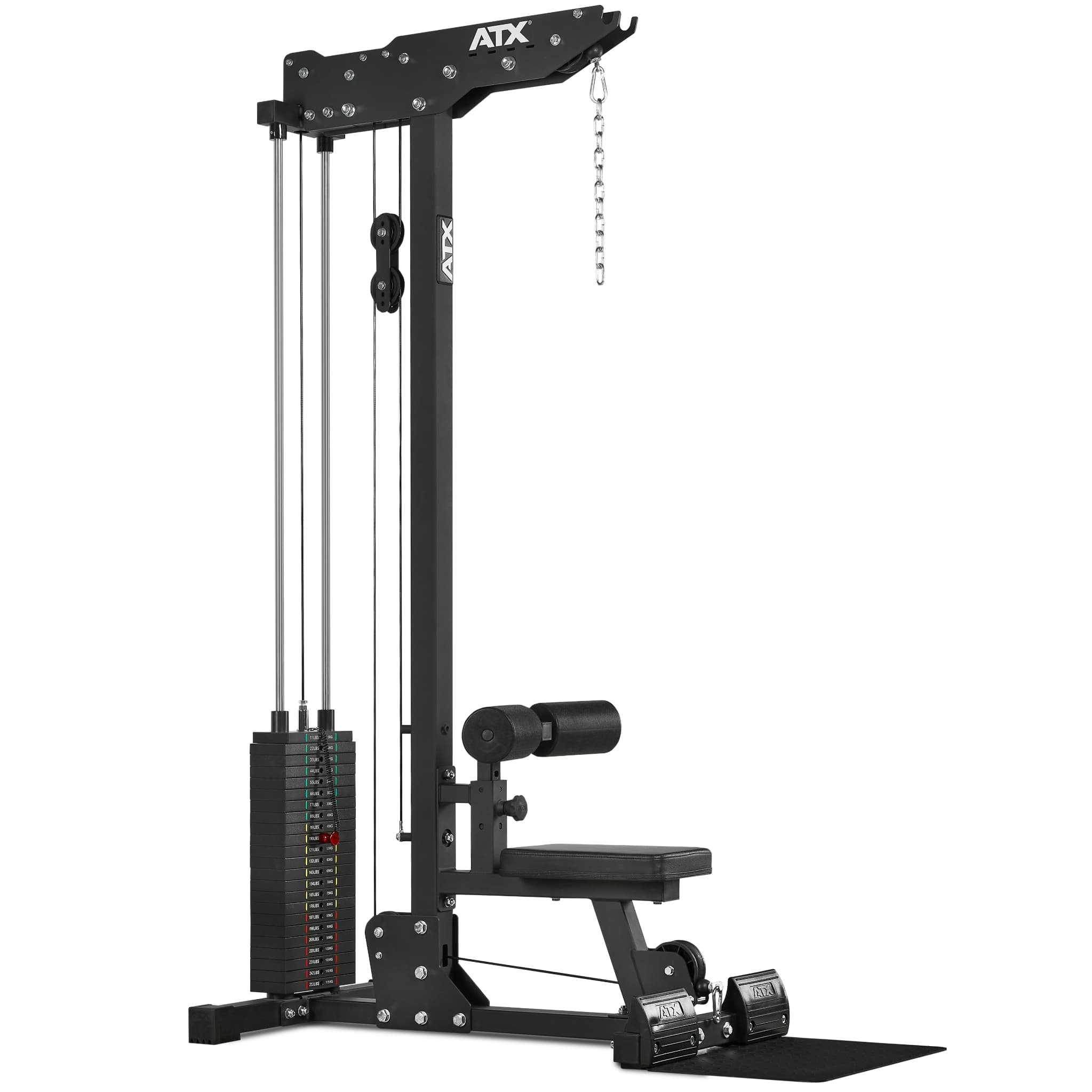ATX Fitnessのセレクタライズドラットプルダウン&ローロウステーションは、従来の人気モデルの利点をすべて継承した業務用のラットプルダウンマシンです。115kg(5kg x 23枚)のウェイトスタックと、2.5kg(1.25kg x 2枚)のアドオンウェイトが付属します。