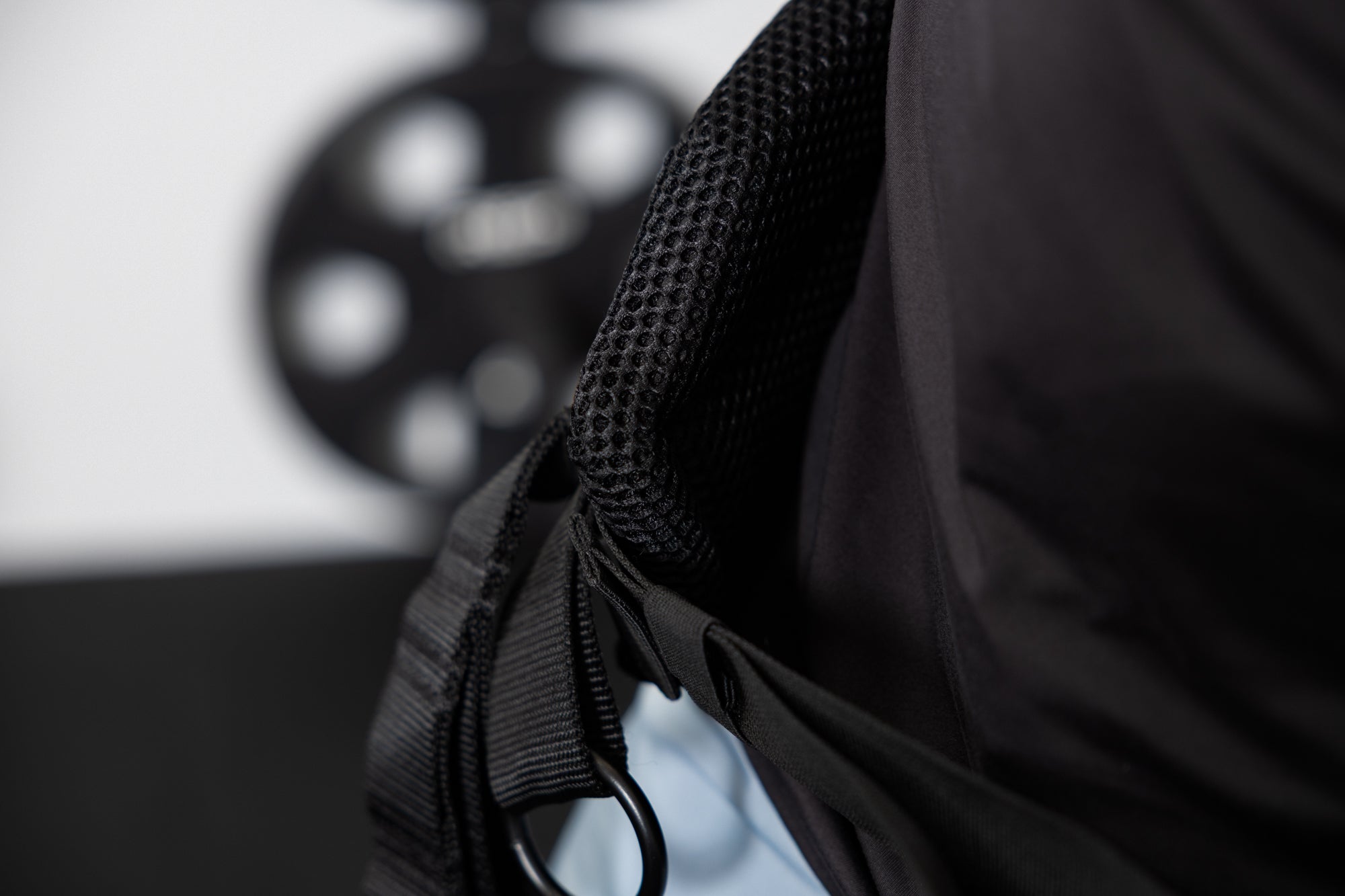 快適性を重視した設計で、厚みのあるフォームとエアメッシュが動作中も快適なクッション性を提供。また、内側に回転したウォーターフォール形状のウェビングチェーン(4段階で調節可能)を搭載し、理想的なスタートポジションを簡単に設定できます。