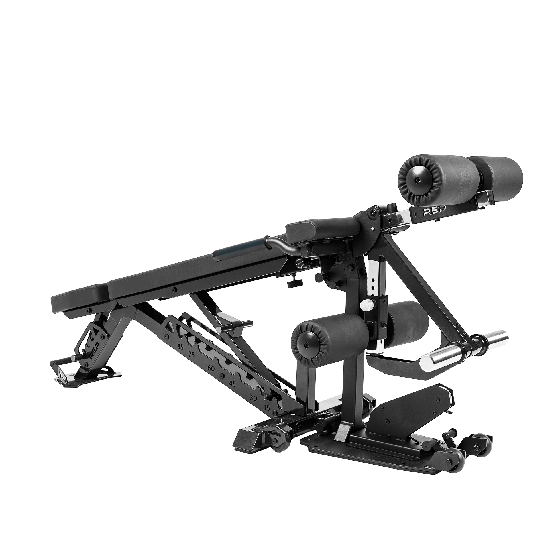 REP Fitnessのレッグエクステンション&レッグカールアタッチメントは、BlackWing™およびNighthawk™アジャスタブルベンチに接続して使用できるレッグエクササイズ用のベンチアタッチメントです。省スペース設計のコンパクトなアタッチメントで、個別にマシンを置くことなく、ベンチを本格的なレッグトレーニングステーションへと変身させます。