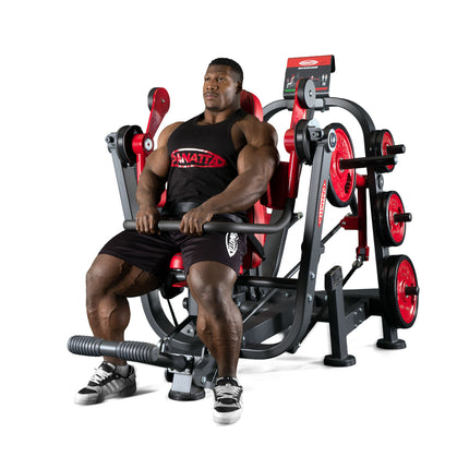 Panattaのスーパープルオーバーマシンは、バーベルやダンベルを使った従来の多関節プルオーバー動作を再現し、大胸筋と広背筋を同時に活性化させるマシンです。フルレンジの動作でトレーニング効果を最大化します。